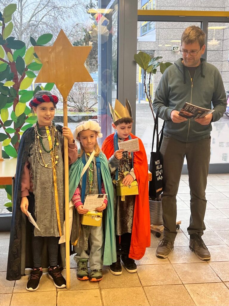 Die Sternsinger singen für uns und bringen den Segenswunsch an der Schule an. Dieses Jahr werden Spenden für Kinder in Bangladesch gesammelt. Wir bedanken uns herzlich bei den Kindern und Herrn Heitz und bei allen, die für Bangladesch gespendet haben.