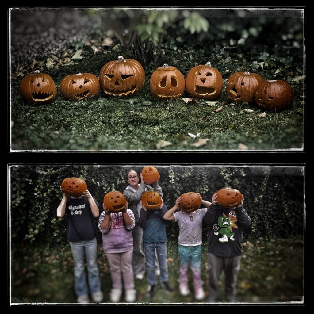 Zum Abschluss wurden alle Kürbislaternen gemeinsam beleuchtet. Das warme Kerzenlicht sorgte für eine gemütliche, herbstliche Atmosphäre und brachte die stolzen Gesichter der kleinen Künstlerinnen und Künstler zum Strahlen.