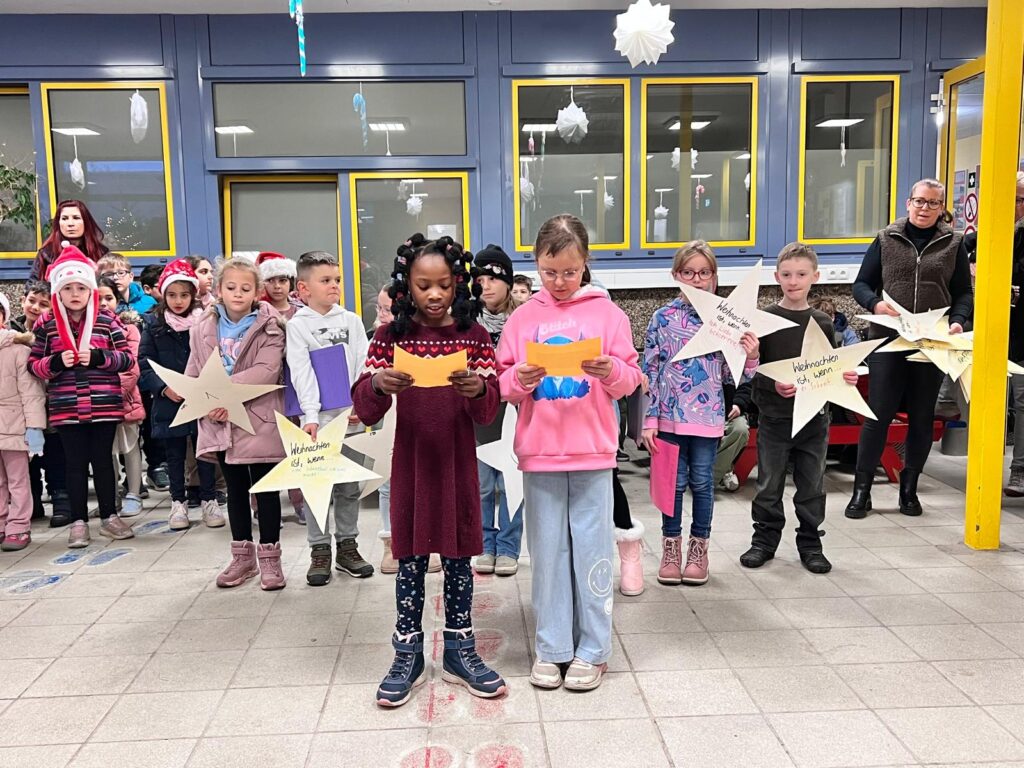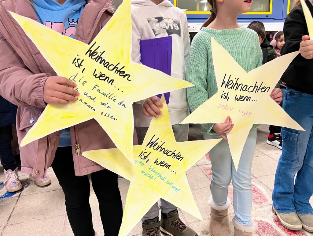 Jeden Freitag im Advent trifft sich unsere Schulgemeinschaft in der Pausenhalle zum gemeinsamen Adventssingen mit Gedichten, Vorträgen und Liedern.